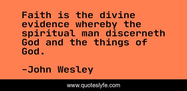 This page presents the quote "Faith is the divine evidence whereby the spiritual man discerneth God and the things of God.". Author of this quote is John Wesley. This quote is about faith, unity,.