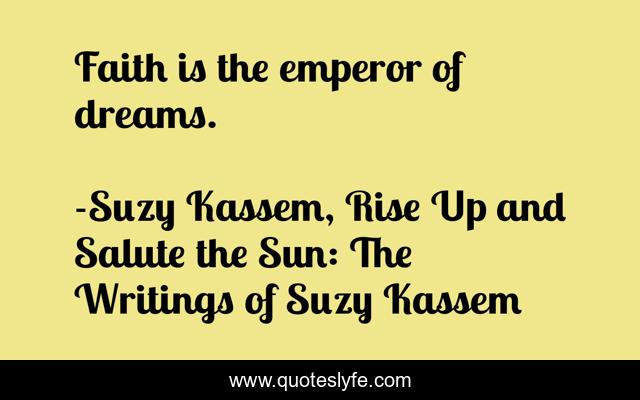 "Suzy Kassem, Rise Up and Salute the Sun: The Writings of Suzy Kassem Quotes." Quoteslyfe.com, 2025. Fri. 05 Dec. 2025. <https://www.quoteslyfe.com/quote/Faith-is-the-emperor-of-dreams-201092>.