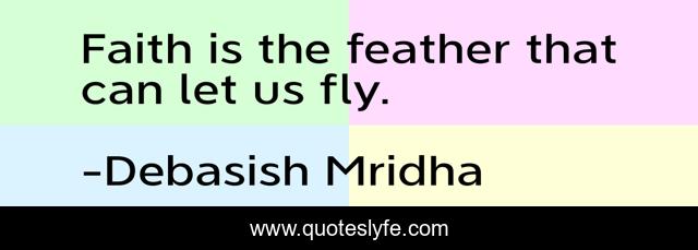 This page presents the quote "Faith is the feather that can let us fly.". Author of this quote is Debasish Mridha. This quote is about faith, debasish, mridha, philosophy, debasish-mridha, inspirational, enthusiasm,.