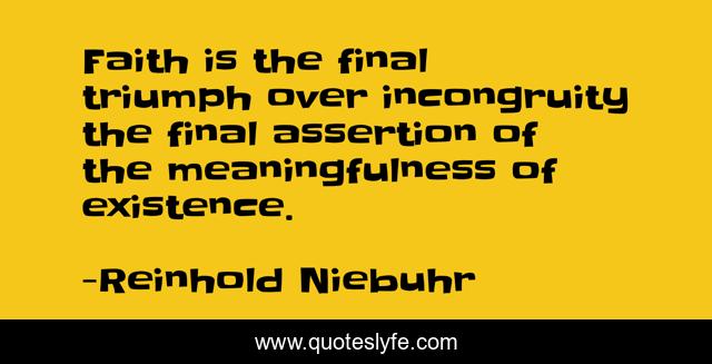 This page presents the quote "Faith is the final triumph over incongruity the final assertion of the meaningfulness of existence.". Author of this quote is Reinhold Niebuhr. This quote is about faith, unity,.