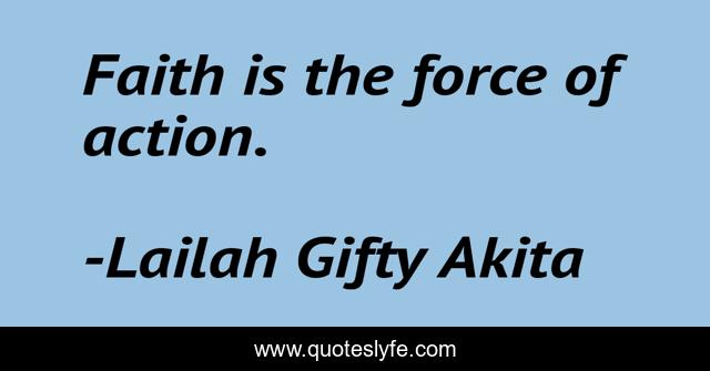 This page presents the quote "Faith is the force of action.". Author of this quote is Lailah Gifty Akita. This quote is about faith, inspiring, christian, deeds, actions, force, kindness,.