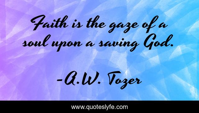 This page presents the quote "Faith is the gaze of a soul upon a saving God.". Author of this quote is A.W. Tozer. .