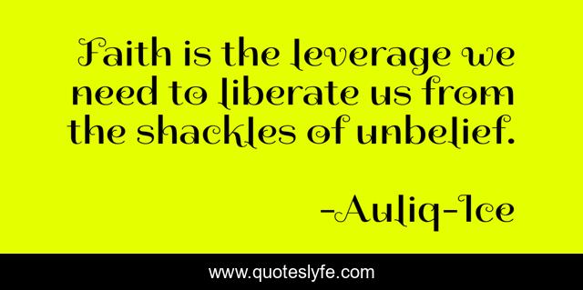 This page presents the quote "Faith is the leverage we need to liberate us from the shackles of unbelief.". Author of this quote is Auliq-Ice. This quote is about faith, confidence, faith-in-yourself, life, encouragement, courage, determination, change, happiness,.