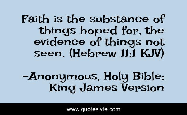 "Anonymous, Holy Bible: King James Version Quotes." Quoteslyfe.com, 2025. Mon. 08 Dec. 2025. <https://www.quoteslyfe.com/quote/Faith-is-the-substance-of-things-hoped-84377>.