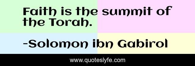 "Solomon ibn Gabirol Quotes." Quoteslyfe.com, 2025. Fri. 05 Dec. 2025. <https://www.quoteslyfe.com/quote/Faith-is-the-summit-of-the-Torah-264563>.