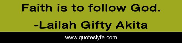 This page presents the quote "Faith is to follow God.". Author of this quote is Lailah Gifty Akita. This quote is about faith, christian, belief, god, religion,.