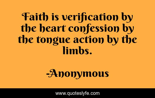 This page presents the quote "Faith is verification by the heart confession by the tongue action by the limbs.". Author of this quote is Anonymous. This quote is about faith, unity,.