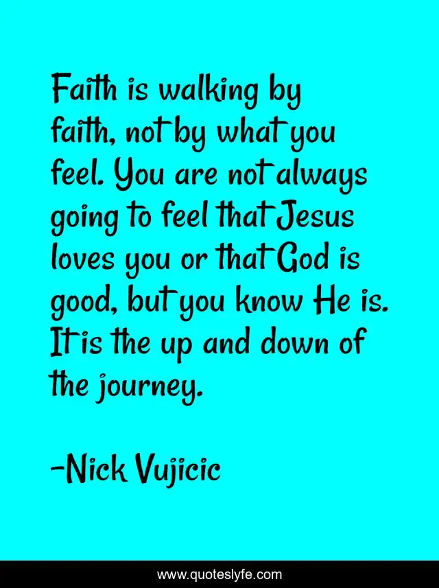 This page presents the quote "Faith is walking by faith, not by what you feel. You are not always going to feel that Jesus loves you or that God is good, but you know He is. It is the up and down of the journey.". Author of this quote is Nick Vujicic. This quote is about god, good, journey,.
