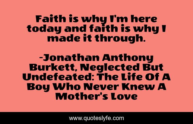 "Jonathan Anthony Burkett, Neglected But Undefeated: The Life Of A Boy Who Never Knew A Mother's Love Quotes." Quoteslyfe.com, 2025. Sat. 06 Dec. 2025. <https://www.quoteslyfe.com/quote/Faith-is-why-I-m-here-today-1639>.