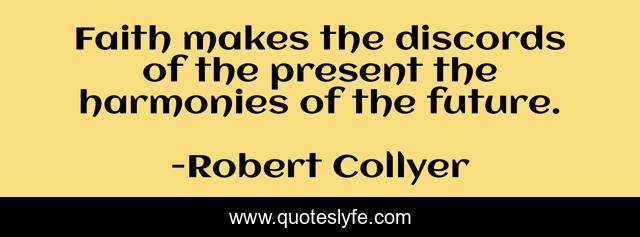 This page presents the quote "Faith makes the discords of the present the harmonies of the future.". Author of this quote is Robert Collyer. This quote is about faith, unity,.
