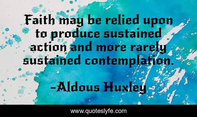 This page presents the quote "Faith may be relied upon to produce sustained action and more rarely sustained contemplation.". Author of this quote is Aldous Huxley. This quote is about faith, unity,.