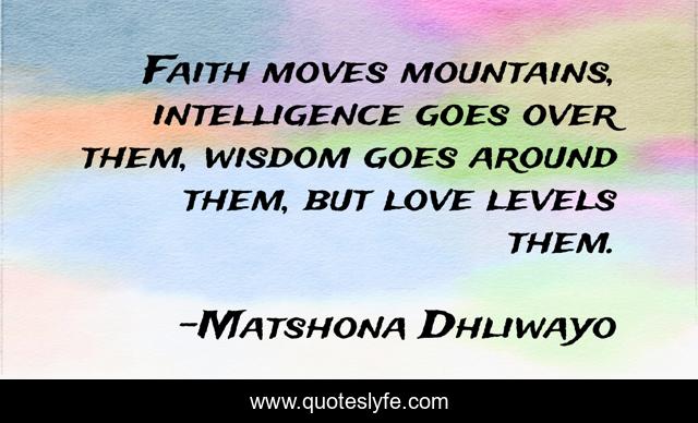 "Matshona Dhliwayo Quotes." Quoteslyfe.com, 2025. Mon. 08 Dec. 2025. <https://www.quoteslyfe.com/quote/Faith-moves-mountains-intelligence-goes-over-them-58021>.