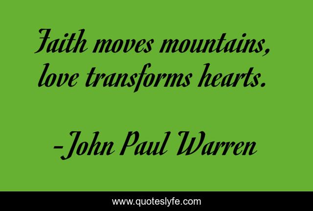 "John Paul Warren Quotes." Quoteslyfe.com, 2025. Fri. 05 Dec. 2025. <https://www.quoteslyfe.com/quote/Faith-moves-mountains-love-transforms-hearts-13995>.