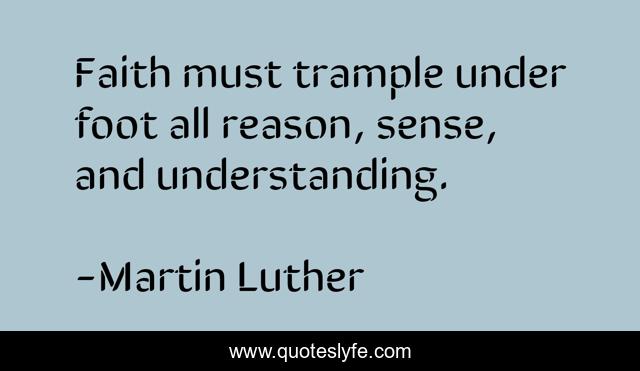 This page presents the quote "Faith must trample under foot all reason, sense, and understanding.". Author of this quote is Martin Luther. This quote is about reason, understanding, sense,.