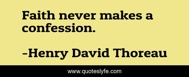 This page presents the quote "Faith never makes a confession.". Author of this quote is Henry David Thoreau. This quote is about confession, makes,.