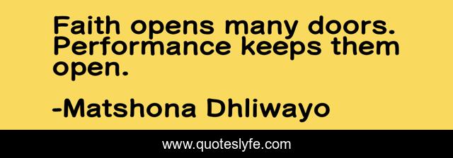 "Matshona Dhliwayo Quotes." Quoteslyfe.com, 2025. Fri. 05 Dec. 2025. <https://www.quoteslyfe.com/quote/Faith-opens-many-doors-Performance-keeps-them-109138>.