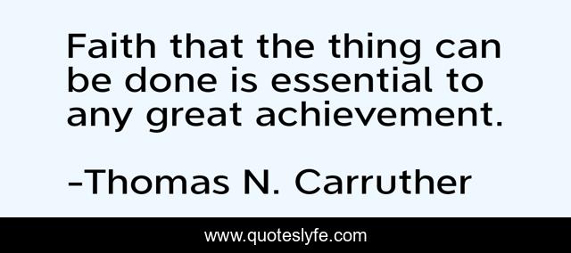 This page presents the quote "Faith that the thing can be done is essential to any great achievement.". Author of this quote is Thomas N. Carruther. .