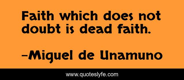 This page presents the quote "Faith which does not doubt is dead faith.". Author of this quote is Miguel de Unamuno. This quote is about faith, unity,.