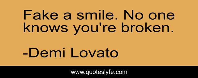 This page presents the quote "Fake a smile. No one knows you're broken.". Author of this quote is Demi Lovato. This quote is about broken, fake-smile, fake, happiness, smile,.