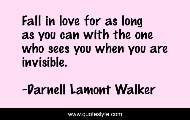 This page presents the quote "Fall in love for as long as you can with the one who sees you when you are invisible.". Author of this quote is Darnell Lamont Walker. This quote is about falling-in-love, love, affection,.