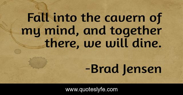 This page presents the quote "Fall into the cavern of my mind, and together there, we will dine.". Author of this quote is Brad Jensen. This quote is about brad-jensen, culture, first-people, native, author, writer, fiction, romance, read,.