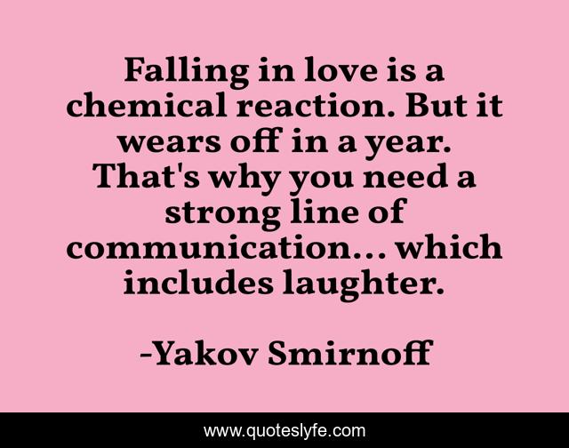 This page presents the quote "Falling in love is a chemical reaction. But it wears off in a year. That's why you need a strong line of communication... which includes laughter.". Author of this quote is Yakov Smirnoff. This quote is about love, strong, laughter, affection,.