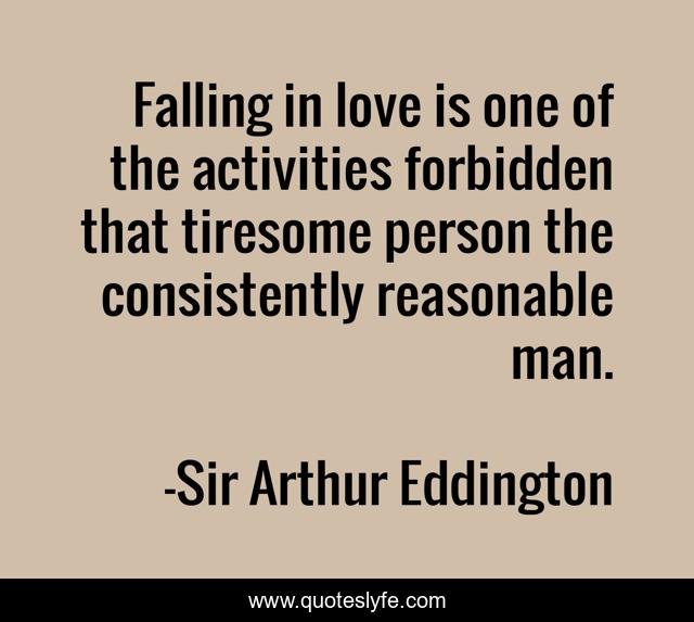 This page presents the quote "Falling in love is one of the activities forbidden that tiresome person the consistently reasonable man.". Author of this quote is Sir Arthur Eddington. .