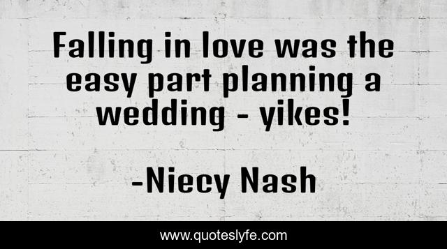 This page presents the quote "Falling in love was the easy part planning a wedding - yikes!". Author of this quote is Niecy Nash. This quote is about planning, love, affection,.