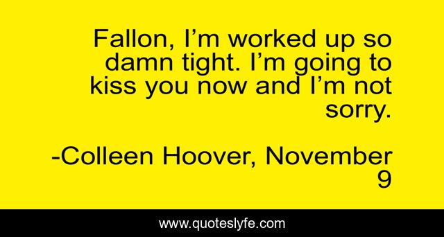 This page presents the quote "Fallon, I’m worked up so damn tight. I’m going to kiss you now and I’m not sorry.". Author of this quote is Colleen Hoover, November 9. .