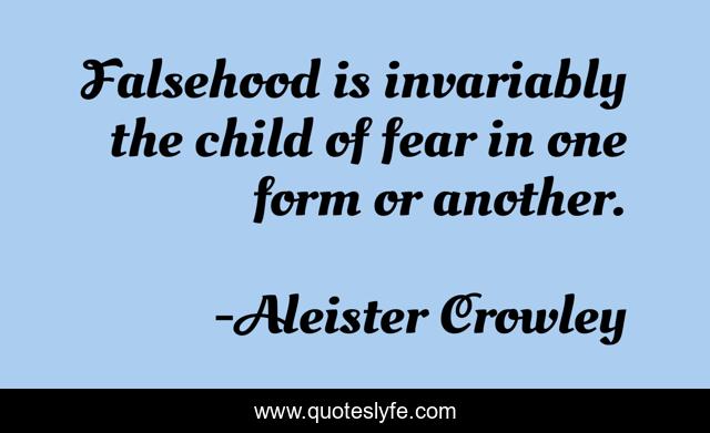 This page presents the quote "Falsehood is invariably the child of fear in one form or another.". Author of this quote is Aleister Crowley. This quote is about child, form, invariably,.