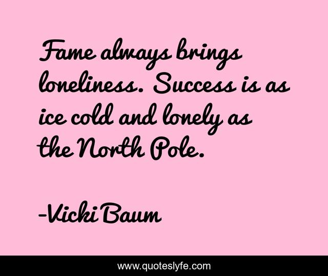 This page presents the quote "Fame always brings loneliness. Success is as ice cold and lonely as the North Pole.". Author of this quote is Vicki Baum. .