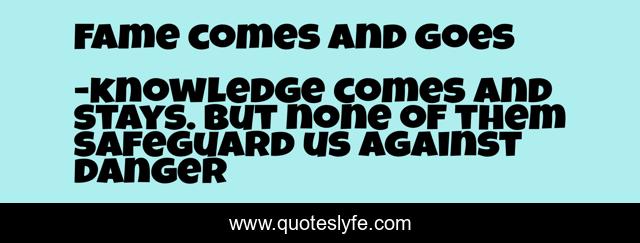 "knowledge comes and stays. But none of them safeguard us against danger Quotes." Quoteslyfe.com, 2025. Sat. 06 Dec. 2025. <https://www.quoteslyfe.com/quote/Fame-comes-and-goes-129271>.