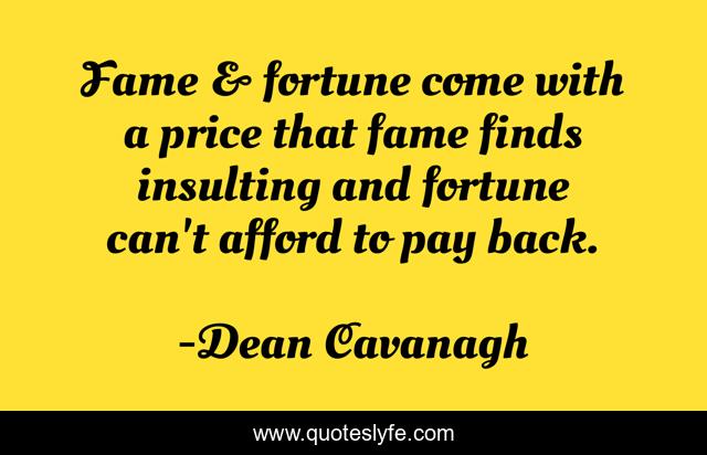 This page presents the quote "Fame & fortune come with a price that fame finds insulting and fortune can't afford to pay back.". Author of this quote is Dean Cavanagh. This quote is about fortune, fame,.