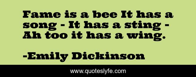 "Emily Dickinson Quotes." Quoteslyfe.com, 2025. Sat. 06 Dec. 2025. <https://www.quoteslyfe.com/quote/Fame-is-a-bee-It-has-a-264685>.
