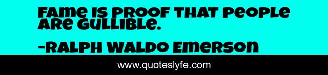 This page presents the quote "Fame is proof that people are gullible.". Author of this quote is Ralph Waldo Emerson. This quote is about gullibility, fame,.