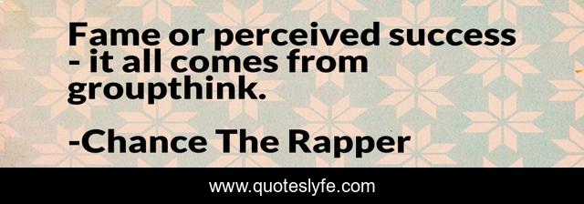 This page presents the quote "Fame or perceived success - it all comes from groupthink.". Author of this quote is Chance The Rapper. This quote is about perceived, fame,.