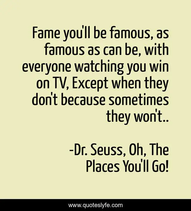"Dr. Seuss, Oh, The Places You'll Go! Quotes." Quoteslyfe.com, 2025. Mon. 08 Dec. 2025. <https://www.quoteslyfe.com/quote/Fame-you-ll-be-famous-as-famous-2982>.