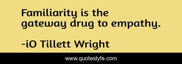This page presents the quote "Familiarity is the gateway drug to empathy.". Author of this quote is iO Tillett Wright. This quote is about compassion, enthusiasm, empathy, inspirational,.