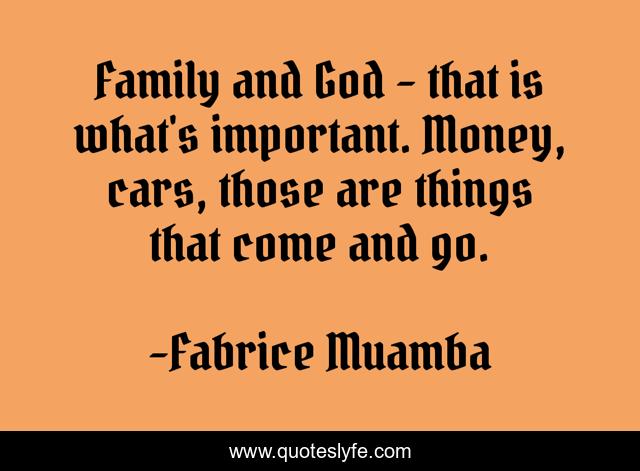 This page presents the quote "Family and God - that is what's important. Money, cars, those are things that come and go.". Author of this quote is Fabrice Muamba. This quote is about money, family, god,.