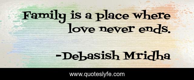 This page presents the quote "Family is a place where love never ends.". Author of this quote is Debasish Mridha. This quote is about life, love, knowledge, inspirational, intelligence, philosophy, wisdom, quotes, affection,.