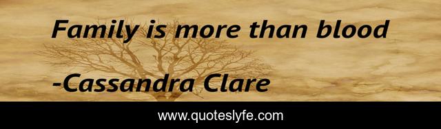 "Cassandra Clare Quotes." Quoteslyfe.com, 2025. Sun. 07 Dec. 2025. <https://www.quoteslyfe.com/quote/Family-is-more-than-blood-85737>.
