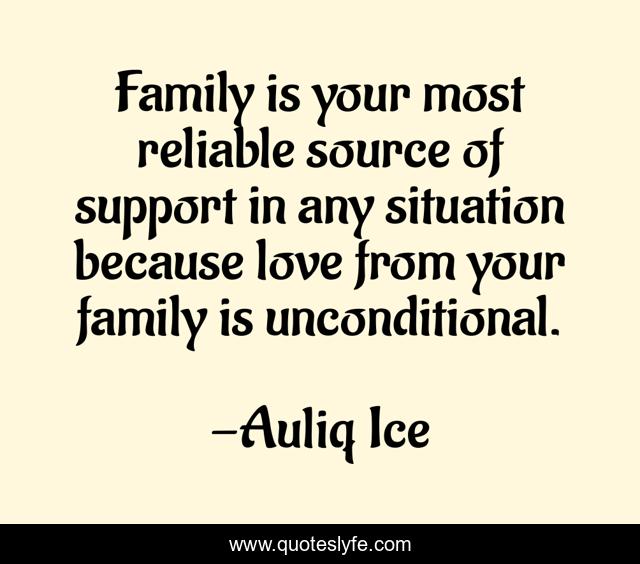 This page presents the quote "Family is your most reliable source of support in any situation because love from your family is unconditional.". Author of this quote is Auliq Ice. This quote is about family-love, marriage, parental-love,.