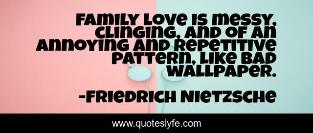 This page presents the quote "Family love is messy, clinging, and of an annoying and repetitive pattern, like bad wallpaper.". Author of this quote is Friedrich Nietzsche. This quote is about love, family, affection,.