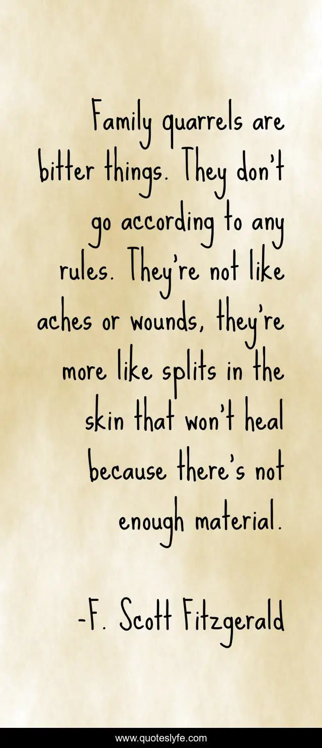 "F. Scott Fitzgerald Quotes." Quoteslyfe.com, 2025. Sat. 06 Dec. 2025. <https://www.quoteslyfe.com/quote/Family-quarrels-are-bitter-things-They-don-299077>.