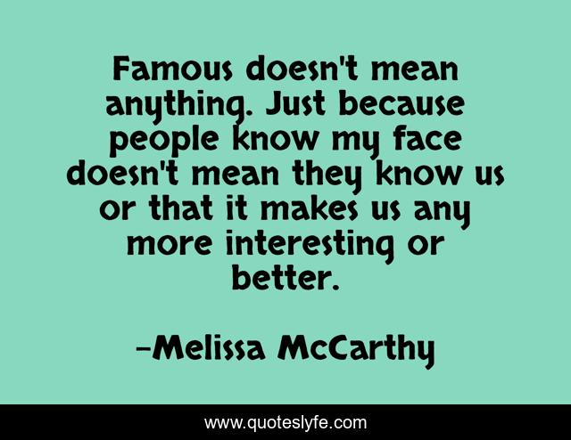 "Melissa McCarthy Quotes." Quoteslyfe.com, 2025. Fri. 05 Dec. 2025. <https://www.quoteslyfe.com/quote/Famous-doesn-t-mean-anything-Just-because-291663>.