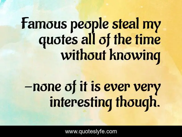 "none of it is ever very interesting though. Quotes." Quoteslyfe.com, 2025. Sat. 06 Dec. 2025. <https://www.quoteslyfe.com/quote/Famous-people-steal-my-quotes-all-of-22229>.