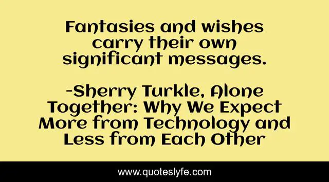 "Sherry Turkle, Alone Together: Why We Expect More from Technology and Less from Each Other Quotes." Quoteslyfe.com, 2025. Sat. 06 Dec. 2025. <https://www.quoteslyfe.com/quote/Fantasies-and-wishes-carry-their-own-significant-197408>.