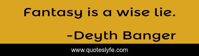 This page presents the quote "Fantasy is a wise lie.". Author of this quote is Deyth Banger. This quote is about fantasy, wise, lie,.