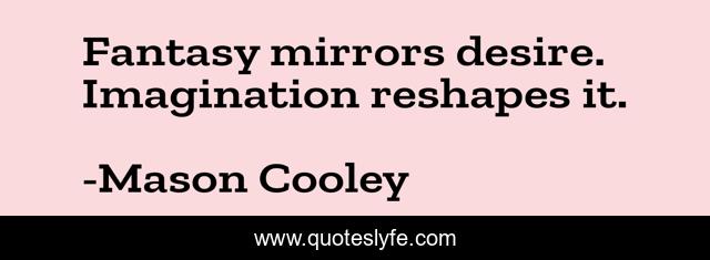 This page presents the quote "Fantasy mirrors desire. Imagination reshapes it.". Author of this quote is Mason Cooley. This quote is about desire, fantasy, mirrors,.