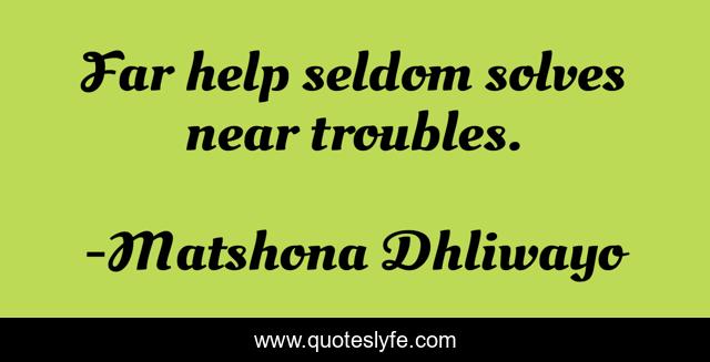 "Matshona Dhliwayo Quotes." Quoteslyfe.com, 2025. Sat. 06 Dec. 2025. <https://www.quoteslyfe.com/quote/Far-help-seldom-solves-near-troubles-198847>.